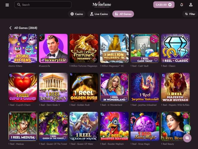 這裡的一切看起來都精雕細琢,賭場玩家絕對是關注的焦點。無論您是新手還是經驗豐富的賭徒,MrFortune 都能讓您樂在其中,盡情娛樂。