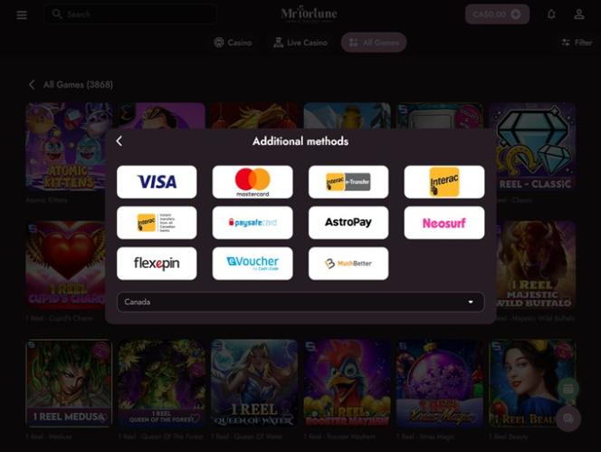 Banking銀⾏業務選項 的 MrFortune Casino