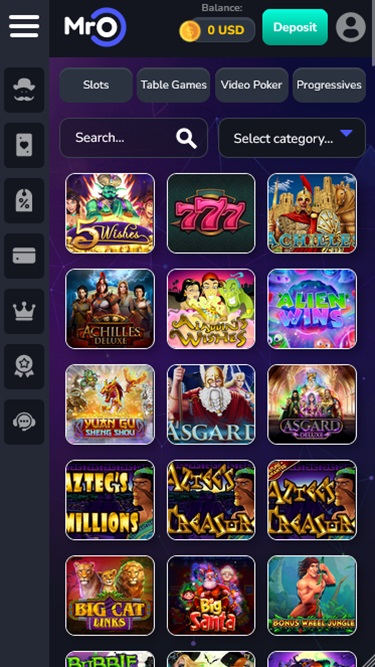 MrO 賭場的遊戲庫規模不大。然而,有限的遊戲選擇並不一定意味著賭場會員無法獲得足夠的遊戲內容。相反,玩家可以嘗試由Real Time Gaming和 Spinlogic Gaming 製作的一系列精彩遊戲。