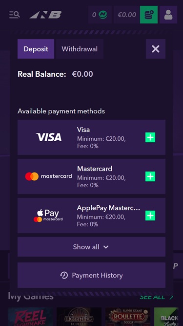 如果您造訪付款頁面,可以選擇您的貨幣和所在國家/地區,並查看您所在地區的存款和提款選項,以及最低和最高限額。這非常實用,因為線上博弈的付款選項因國家/地區而異,付款頁面可以幫助您了解您偏好的付款方式是否適用。