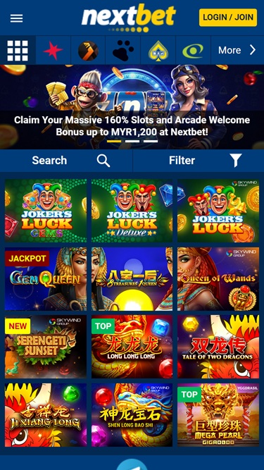 Nextbet 以白色背景、藍色疊加和黃色色調的組合,營造出一個清晰易見的環境,既賞心悅目,又易於操作。設計師將使用者體驗和易用性放在首位,這一點值得稱讚。