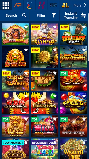 玩家可以使用英語、印尼語、韓語、泰語、越南語和簡體中文瀏覽網站,並在橫向選單中切換偏好設定。在行動裝置優化方面,所有遊戲和內容均可透過原生瀏覽器或下載 PWA 應用程式在 iOS 和 Android 裝置上完全存取。