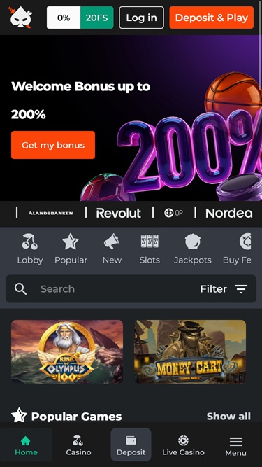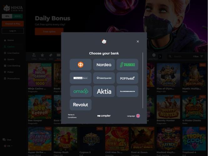 作為Trustly支援的企業之一,該平台為玩家提供無需註冊的「即付即玩」服務。為了提高效率並提供真正卓越的玩家體驗,營運商提供即時提現和全天候客戶支持,以及精選的熱門賭場遊戲。