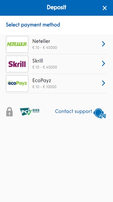 NordicBet 的銀行選項並不多,但賭場處理玩家提款的速度非常快,有些款項只需幾個小時即可到達。存款和提款可以透過銀行電匯、萬事達卡、Visa、Neteller、Skrill 和 WebMoney 進行。存款方式還包括 ClickandBuy 和 EntroPay。