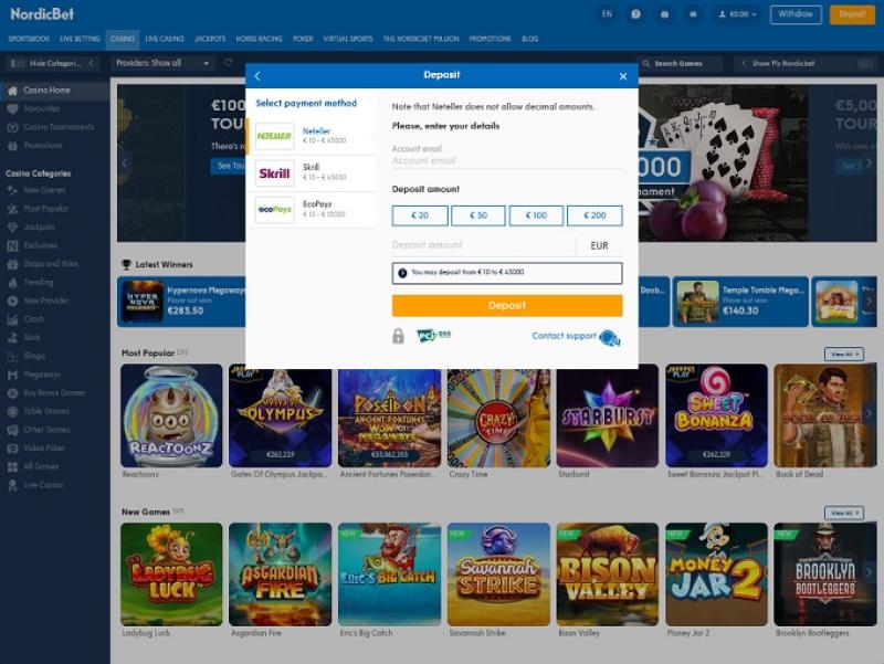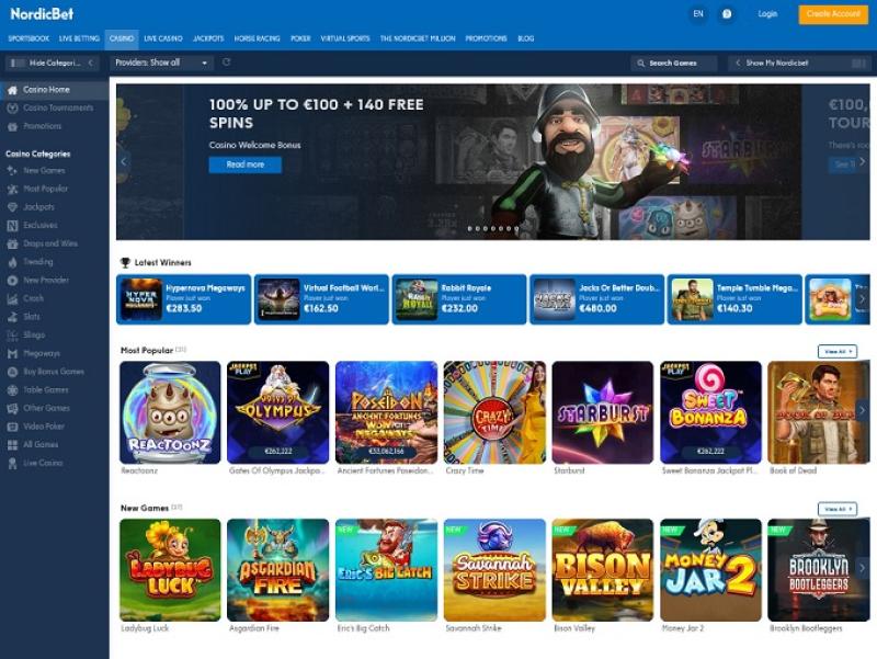 除了標準的賭場遊戲外,NordicBet Casino 還為客戶提供體育博彩、撲克和真人荷官遊戲。