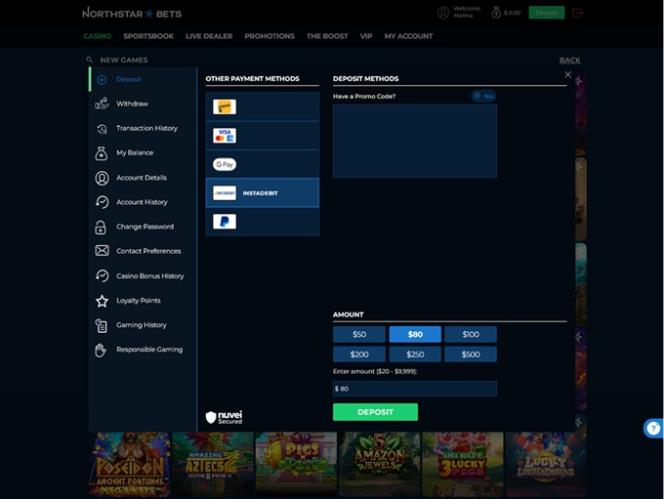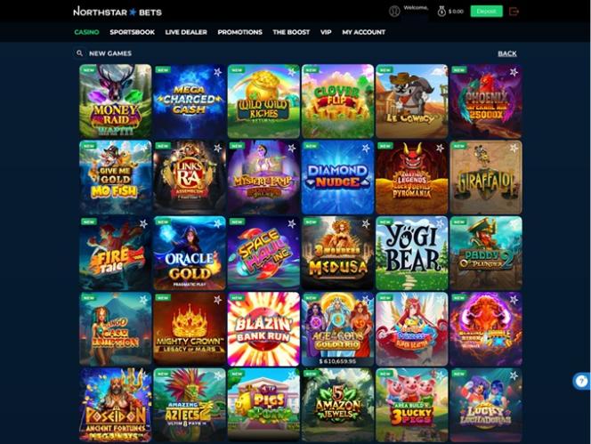 NorthStar Bets Casino 提供針對所有可用設備(行動裝置和桌上型電腦)優化的遊戲,這些遊戲分為以下幾個部分:真人荷官部分的真人二十一點、真人輪盤賭、真人百家樂和遊戲節目,以及賭場類別的高級老虎機、老虎機、累積獎金、桌面遊戲和所有遊戲。