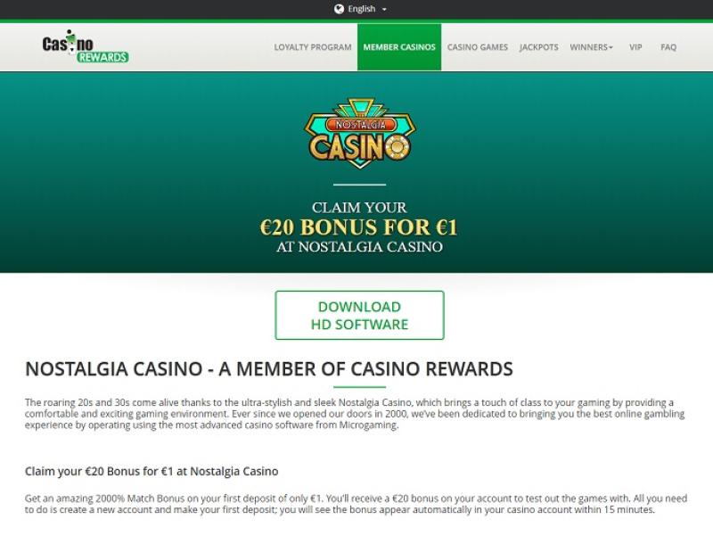 Nostalgia Casino 是由 Casino Rewards 集團經營的線上博彩網站。賭場被眾多業內人士和玩家譽為絕佳的博彩場所,他們稱讚其優秀的管理和支援團隊,同時也對 Nostalgia 龐大的遊戲庫讚不絕口。賭場資訊