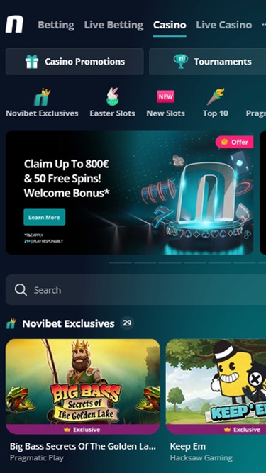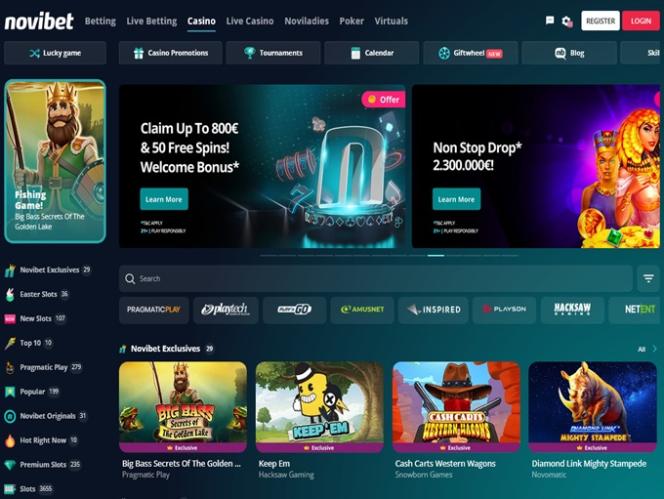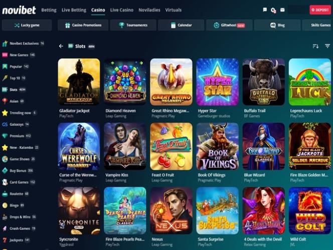 Novibet 賭場由 Net Entertainment, Playtech, 1x2gaming, Amatic Industries, Barcrest, Big Time Gaming, ELK Studios, Evolution Gaming, EYECON, iSoftBet, lightningboxgames, Novomatic, Oryx, Play'n GO, playson, Quickspin, Relax Gaming, Thunderkick, Yggdrasil, Endorphina, Wazdan, Realistic Games, Betgames, Booming Games, Stakelogic, Pragmatic Play, Nolimit City, Red Tiger Gaming, Spinomenal, Red Rake Gaming, Skillzzgaming, Fantasma Games, SYNOT Games, Kalamba, Skywind, Triple Edge Studios, BGAMING, Northern Lights Gaming, Fazi, Evoplay, Stormcraft Studios, Switch Studios, Pocket Games Soft, All41 Studios, Gluck Games, Gameburger Studios, Pulse 8 Studios, Slot Factory, Neon Valley Studios, Golden Rock Studios, Spearhead Studios, Shuffle Master, SpinPlay Games, SmartSoft Gaming, Real Dealer Studios, GONG Gaming, Blue Guru Games, Lady Luck Games, On Air Entertainment, Buck Stakes Entertainment, Games Global, Wizard Games, 2by2 Gaming, Ainsworth, Ash Gaming, Bally Technologies, bluberi, Blueprint Gaming, Endemol Games, NextGen, Pariplay, Push Gaming, Tom Horn Gaming, WMS, Inspired Gaming, Gaming Realms, Genii, SG Interactive, Gamomat, Red7Mobile, CORE Gaming, Scientific Games, Side City Studios, BF Games, betiXon, Old Skool Studios, Foxium, Betdigital, Zitro, Just For The Win, Storm Gaming Technology, PearFiction Studios, Wild Streak Gaming, Slingshot Studios, Golden Hero, Fortune Factory Studios, 4ThePlayer, Gamevy, Crazy Tooth Studio, NetGaming, ReelPlay, Japan Technicals Games, Alchemy Gaming, Rarestone Gaming, Plank Gaming, Snowborn Games, Hacksaw Gaming, Gold Coin Studios, Half Pixel Studios, Arcadem, Aurum Signature Studios, Armadillo Studios, Beter, Area Vegas, Leap Gaming, Betradar, GoldenRace, Wishbone Games, Spribe, Gaming Corps, HammerTime Games, INO Games, Nailed It! Games, Live 5, Atomic Slot Lab, Neko Games, Reel Kingdom, Oros Gaming, Givme Games, JVL, Indigo Magic, Light & Wonder and Boldplay提供支援,賭場遊戲透過即時遊戲平台提供,可直接透過您的網路瀏覽器載入。該網站還支援行動遊戲,這意味著您可以透過智慧型手機或平板電腦存取遊戲。