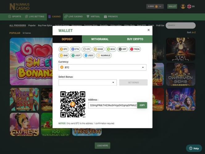 Nummus Casino 的出納員支援加密貨幣,為玩家提供多種流行的數位貨幣進行交易。玩家可以選擇比特幣、比特幣現金、狗狗幣、萊特幣、以太坊等。對於喜歡傳統銀行業務的玩家,賭場也支援法定貨幣的存取款,包括阿根廷比索、澳元、巴西雷亞爾、日圓、歐元、美元、南非蘭特…