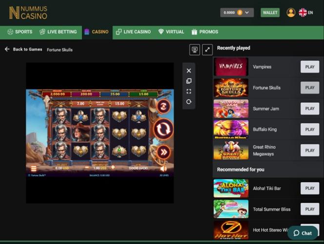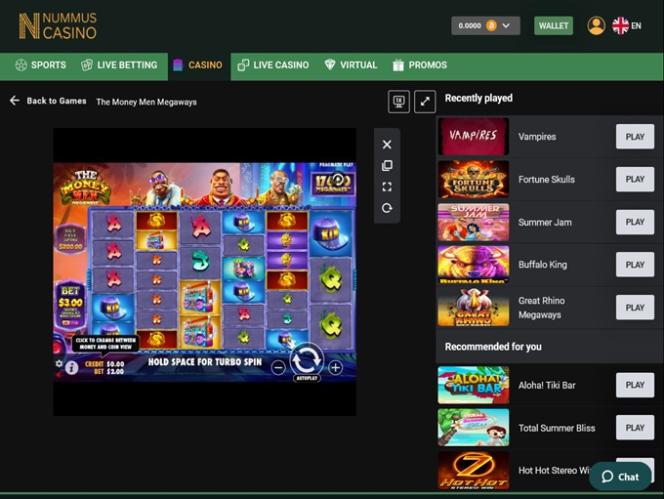 Nummus Casino 並沒有獲得Wizard of Odds概率巫師的認證。