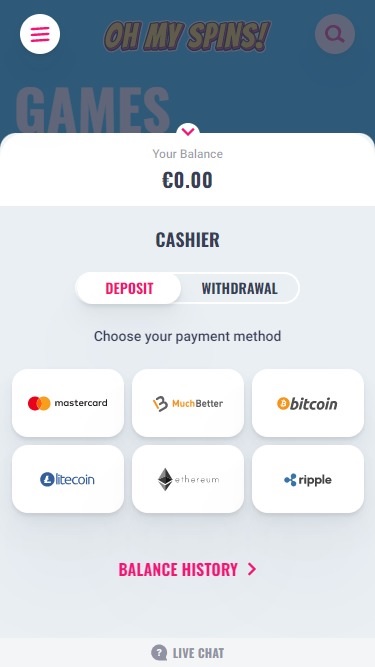 Banking銀⾏業務選項 的 Oh My Spins Casino