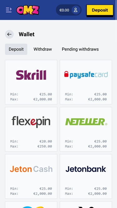 Banking銀⾏業務選項 的 OhMyZino Casino