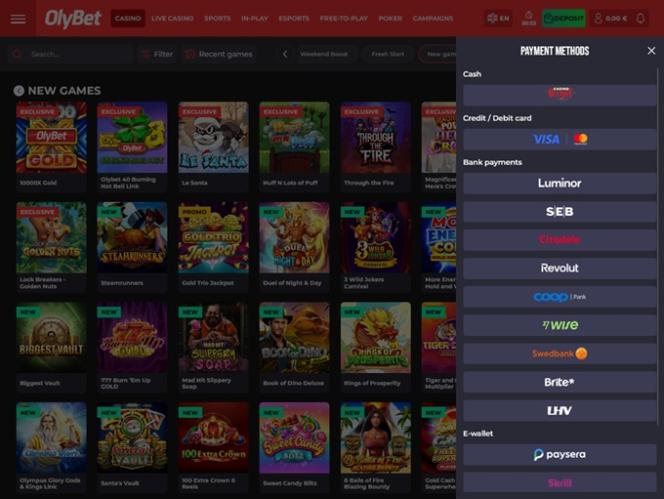 OlyBet 賭場由 Microgaming, Net Entertainment, Playtech, 1x2gaming, Barcrest, Big Time Gaming, ELK Studios, Evolution Gaming, Ezugi, lightningboxgames, Novomatic, Play'n GO, playson, Rabcat, Relax Gaming, Thunderkick, Yggdrasil, Endorphina, Betgames, Stakelogic, Pragmatic Play, Nolimit City, Felt Gaming, Red Tiger Gaming, Spinomenal, Red Rake Gaming, Skillzzgaming, Fantasma Games, SYNOT Games, Kalamba, Skywind, Triple Edge Studios, Northern Lights Gaming, Stormcraft Studios, Switch Studios, Electric Elephant Games, Pocket Games Soft, Bulletproof Games, All41 Studios, Gluck Games, Gameburger Studios, Pulse 8 Studios, Slot Factory, Neon Valley Studios, Golden Rock Studios, Swintt, SpinPlay Games, 7Mojos, HungryBear Gaming, GONG Gaming, Blue Guru Games, On Air Entertainment, Buck Stakes Entertainment, Games Global, Amusnet Interactive, 2by2 Gaming, Greentube, Leander Games, Media Live, NextGen, Tom Horn Gaming, WMS, Inspired Gaming, Gaming Realms, SG Interactive, Scientific Games, BF Games, Iron Dog Studio, Old Skool Studios, Foxium, Just For The Win, Reflex Gaming, Storm Gaming Technology, PearFiction Studios, Apollo Games, Wild Streak Gaming, Slingshot Studios, Fortune Factory Studios, Jade Rabbit Gaming, RubyPlay, 4ThePlayer, AvatarUX, Gamevy, Crazy Tooth Studio, ReelPlay, Alchemy Gaming, Snowborn Games, Boomerang Studios, Hacksaw Gaming, Max Win Gaming, Gold Coin Studios, Bang Bang Games, Half Pixel Studios, SilverBack Gaming, Peter And Sons, Eurostar Studios, Aurum Signature Studios, Area Vegas, RAW iGaming, Leap Gaming, Wishbone Games, Circular Arrow, Print Studios, Gaming Corps, HammerTime Games, Four Leaf Gaming, INO Games, Nailed It! Games, Reel Kingdom and Oros Gaming提供支持,其遊戲透過基於網頁的即時遊戲平台提供。這意味著您可以透過電腦網頁瀏覽器註冊、存款和玩遊戲,而無需下載笨重的賭場軟體。該賭場還支援行動遊戲,您可以使用智慧型手機或平板電腦進行遊戲。