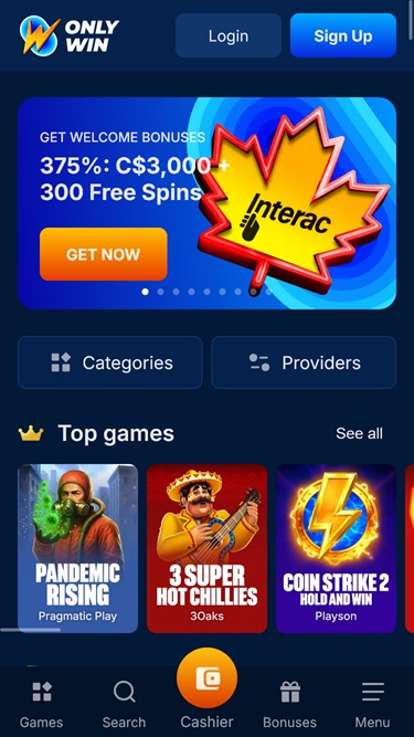 OnlyWin Casino 網站僅接受來自加拿大的玩家。