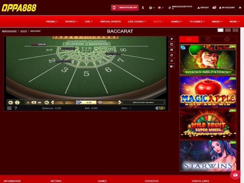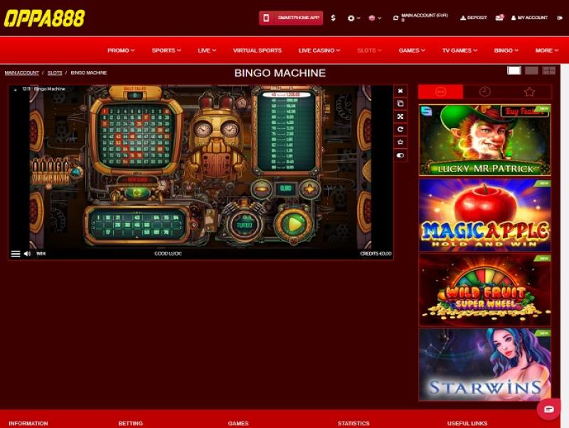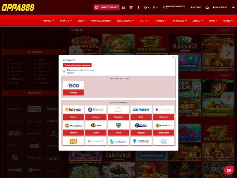Oppabet 由 BetSoft, 1x2gaming, Espresso Games, Evolution Gaming, Ezugi, Genesis Gaming, Habanero Systems, HO Gaming, iSoftBet, Oryx, playson, Rival, Saucify, Vivo Gaming, WM, Yggdrasil, Endorphina, Wazdan, Realistic Games, Arrows Edge, Gameplay Interactive, Pragmatic Play, ZEUS Services, Booongo, LuckyStreak, Spinomenal, Red Rake Gaming, Inbet Games, Xprogaming, Fugaso, Belatra Games, ReelNRG, Mobilots, Revolver Gaming, Platipus Gaming, Skywind, Spinmatic, Spadegaming, Concept Gaming, Fazi, Evoplay, SA Gaming, OneTouch, Dreamtech Gaming, Gluck Games, Bunfox Games, Mascot Gaming, TVBet, NetGame Entertainment, Slot Factory, DLV, Radi8 Games, Spearhead Studios, Swintt, ThunderSpin, Super Spade Games, TrueLab Games, Mancala Gaming, 7Mojos, SmartSoft Gaming, KA Gaming, Atmosfera, FilsGame, Holle Games, Caleta Gaming, Eurasian Gaming, Wizard Games, CT Interactive, Igrosoft, Pariplay, Tom Horn Gaming, Genii, Mr Slotty, MGA, Authentic Gaming, BF Games, betiXon, Iron Dog Studio, Reflex Gaming, Aspect Gaming, Apollo Games, Wild Streak Gaming, RubyPlay, Gamevy, High 5 Games, GMW, PlayStar, Black Pudding Games, Hacksaw Gaming, SimplePlay, Absolute Live Gaming, Lotto Instant Win, FastSpin, FlipLuck, Leap Gaming, GoldenRace, Winfinity, 3 Oaks Gaming, Funky Games, Reel Kingdom, JVL and ABXplay提供支持,賭場遊戲採用網頁即時遊戲平台,可透過您常用的網頁瀏覽器載入。遊戲選擇豐富,網站設計精美,讓您輕鬆導航至所需頁面。此外,網站也全面支援行動裝置。