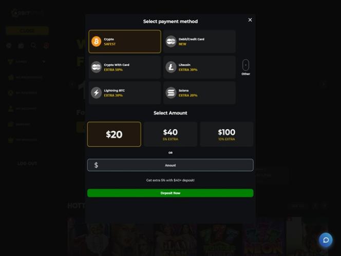 值得注意的是,該網站提供多種支付方式,尤其支援加密貨幣,方便玩家即時提款。此外,該網站也接受信用卡等傳統銀行業務。