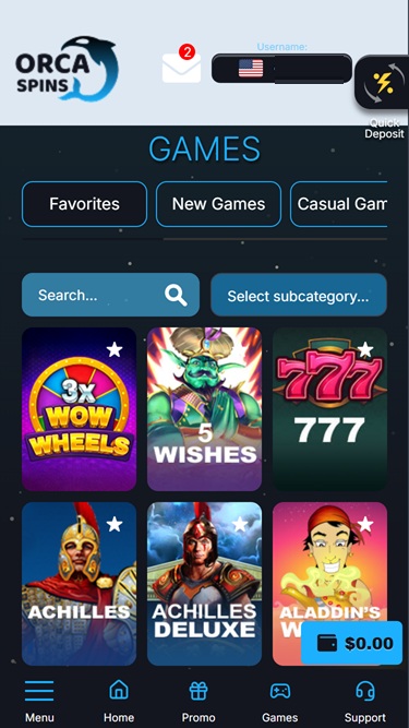 如果您喜歡豐厚的賭場獎金,Orca Spins 絕對能滿足您的需求!從免費旋轉到加密貨幣存款獎金,各種精彩活動應有盡有。前往「促銷」頁面查看當前優惠活動—別忘了訂閱他們的電子報,即可直接在您的信箱中收到個人化優惠訊息。