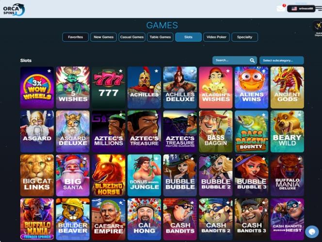 順便一提,Orca Spins沒有真人荷官遊戲,因為 RTG 不提供這類遊戲。