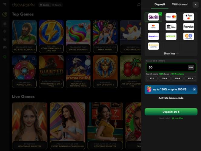 刮刮卡遊戲,例如 Scratch Match、King of Jumping Scratch、Ice Scratch Bronze、Piggy Bank Scratch 和 Shave the Beard,都是 Oscarspin Casino 玩家喜愛的一些熱門遊戲。