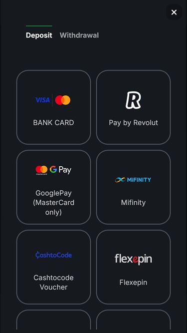 - 所需的最低存款金額取決於所選的付款方式和貨幣。