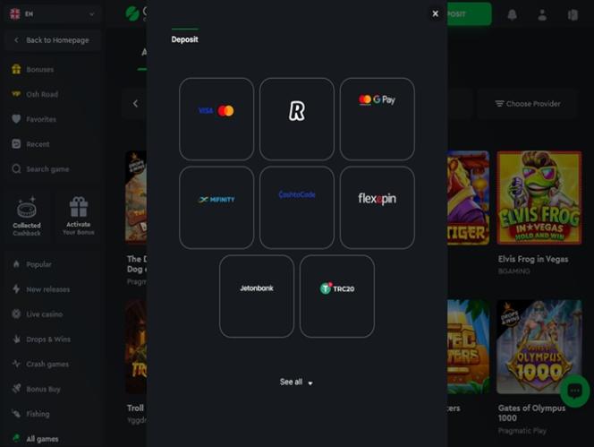 在付款方式方面,OSH Casino 的玩家將擁有多種存款和提款選擇,包括Visa 、萬事達卡、銀行電匯、 Apple Pay 、 Google Pay 、 MiFinity 、 Payz和Flexepin 。賭場也接受多種加密貨幣,包括比特幣、比特幣現金、狗狗幣、以太幣、萊特幣、波場幣、泰達幣和瑞波幣。