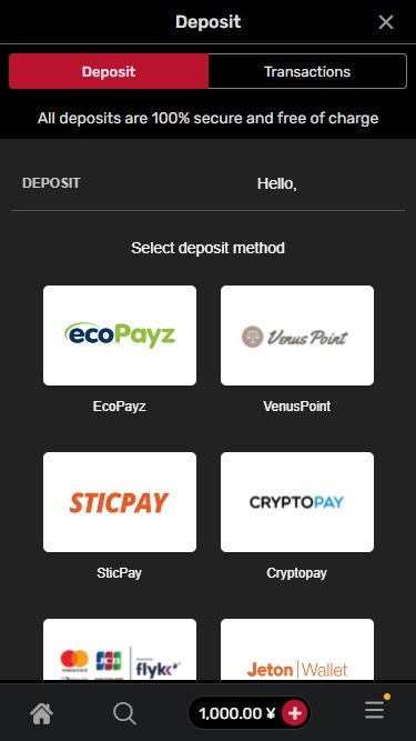 在瀏覽產品組合時,玩家不會遇到任何障礙,因為所有內容都按類型劃分。 「遊戲」部分顯示老虎機遊戲的最新動態,而「賭場」部分則提供豐富的百家樂、骰寶、輪盤賭和二十一點遊戲以及表演節目。