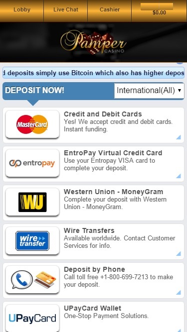 Pamper Casino 由 BetSoft提供支持,賭場的遊戲透過基於網路的平台以及允許隨時隨地玩的行動網站提供。其他遊戲