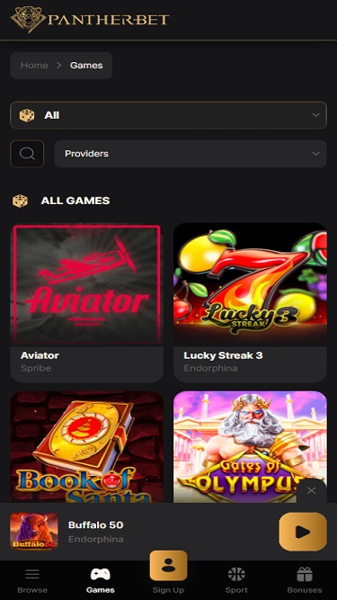 Pantherbet Casino 並沒有很多iGaming 開發商,但它似乎與少數幾家合適的開發商合作,以保持其遊戲庫的多樣性,從而滿足客戶的需求。