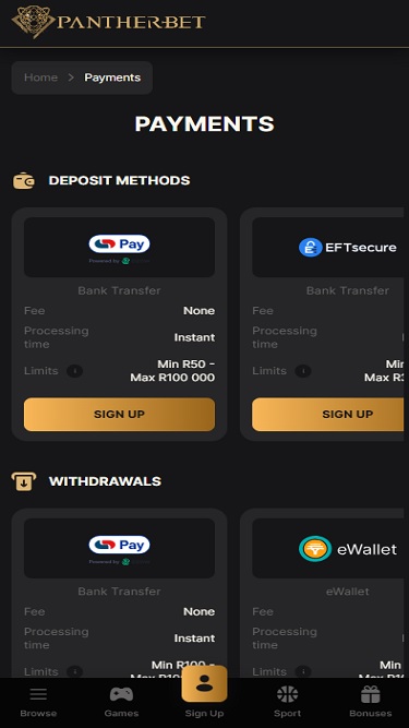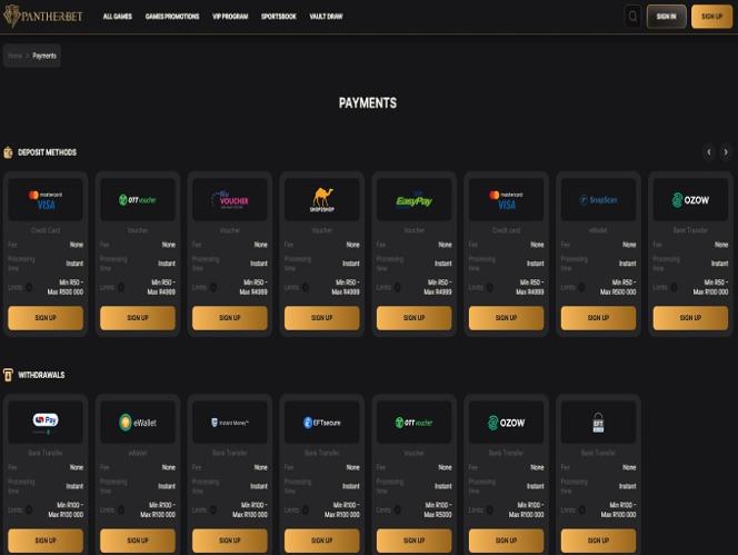 Pantherbet 線上賭場專為居住在南非的玩家打造,對於那些尋求快速遊戲和在安全公平的環境中享受一流遊戲體驗的玩家來說,它已成為一個熱門的選擇。