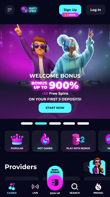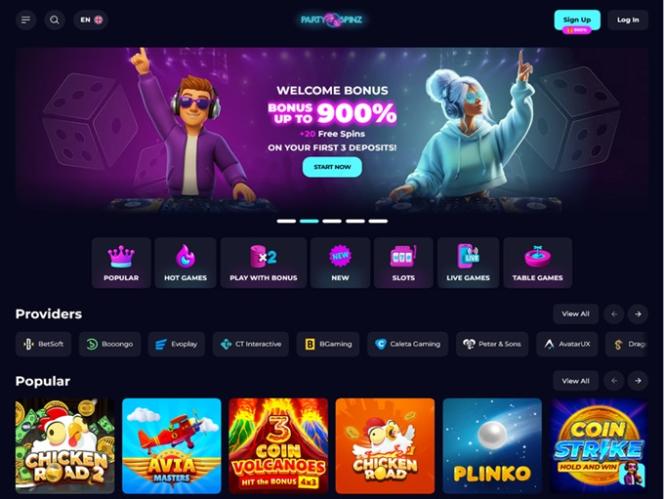 PartySpinz是一家現代化的線上賭場,致力於為玩家提供媲美拉斯維加斯的博彩體驗,讓玩家足不出戶即可享受豐富的遊戲選擇,包括真錢老虎機、真人荷官遊戲、桌面遊戲和碰碰車遊戲。此外,PartySpinz也非常注重提供豐厚的獎金、促銷活動、精彩賽事和網路錦標賽。