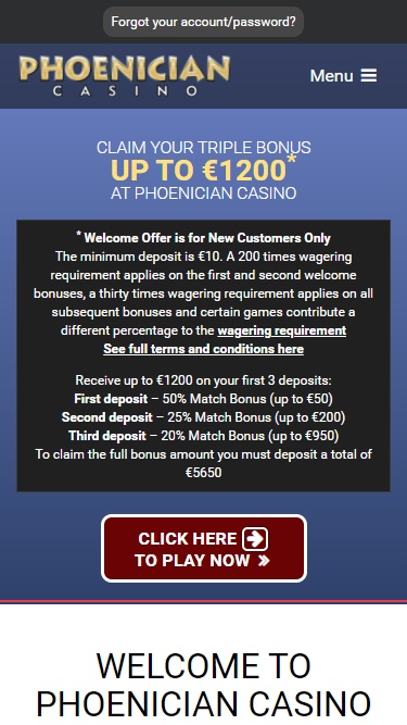 Phoenician Casino 幾年前開業,現已成為 Casino Rewards 旗下線上賭場的支柱之一。在 Phoenician Casino 玩遊戲的玩家可以享受賭場穩定的管理、便利的銀行業務選擇以及由 Microgaming 提供支援的龐大遊戲庫。賭場資訊