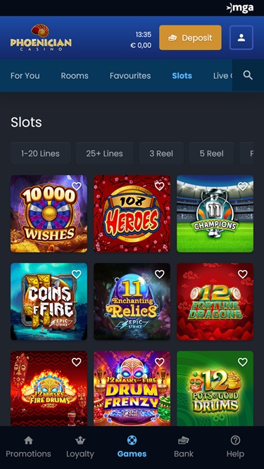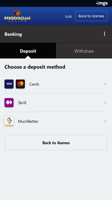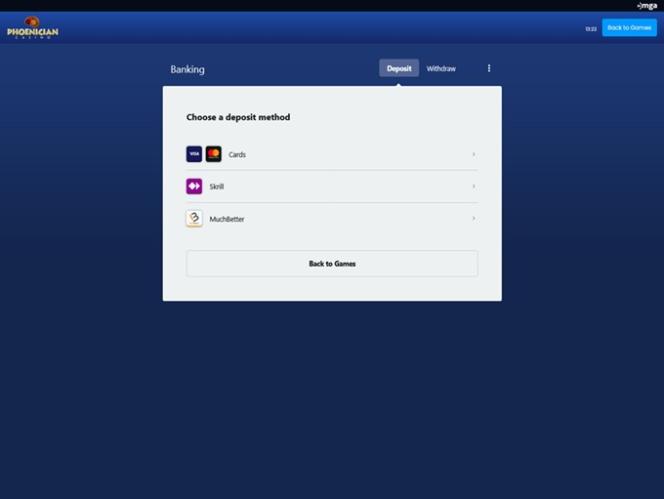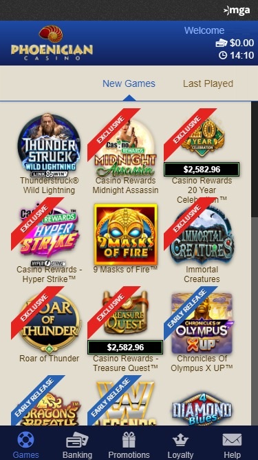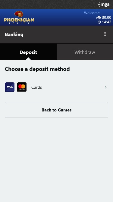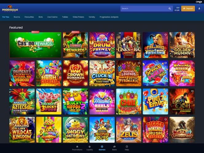 Phoenician Casino 由 Microgaming, Evolution Gaming, Pragmatic Play, Triple Edge Studios, Northern Lights Gaming, Stormcraft Studios, Switch Studios, All41 Studios, Gameburger Studios, Pulse 8 Studios, Neon Valley Studios, SpinPlay Games, Real Dealer Studios, GONG Gaming, On Air Entertainment, Buck Stakes Entertainment, Games Global, Old Skool Studios, Foxium, Just For The Win, PearFiction Studios, Wild Streak Gaming, Slingshot Studios, Fortune Factory Studios, Crazy Tooth Studio, Alchemy Gaming, Snowborn Games, Gold Coin Studios, Half Pixel Studios, Eurostar Studios, Aurum Signature Studios, Area Vegas, Wishbone Games, Circular Arrow, HammerTime Games, INO Games, Nailed It! Games, Neko Games, Reel Kingdom and Oros Gaming提供支持,為玩家提供豐富的遊戲選擇。賭場提供可下載的用戶端軟體和瀏覽器內建網站,此外還有一個行動網站,方便平板電腦和智慧型手機玩家暢玩。Baccarat
