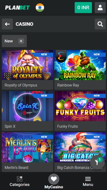 所有可用的遊戲都按照以下賭場類別進行組織:老虎機、真人娛樂場、電視遊戲、賓果遊戲、狩獵和釣魚、虛擬體育、基諾遊戲、亞運會、崩潰遊戲、技巧遊戲和紙牌遊戲。
