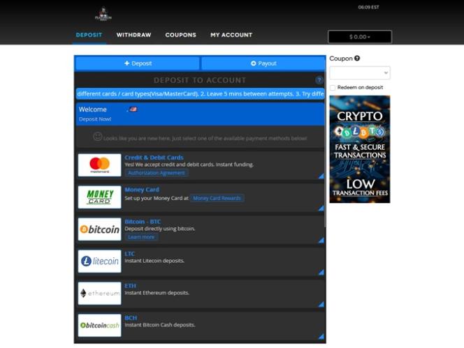Banking銀⾏業務選項 的 Platinum Reels Casino