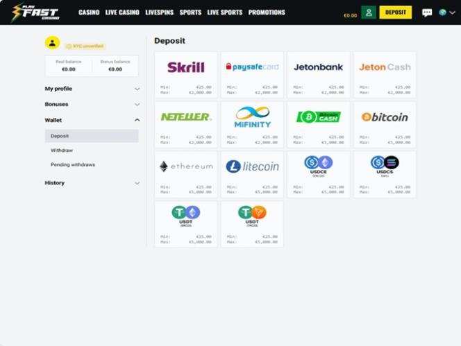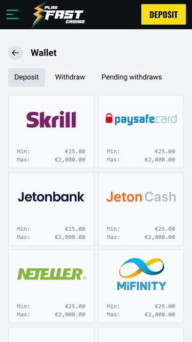 - PlayFast 可能會拒絕接受任何存款,無需任何解釋。