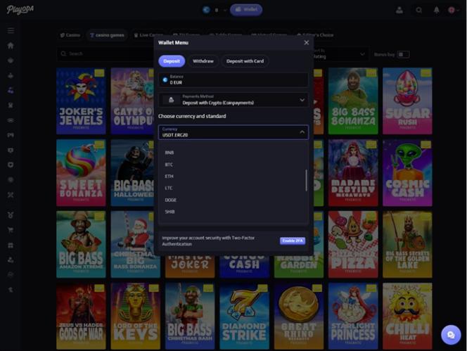 - 該賭場接受法定貨幣和加密貨幣。