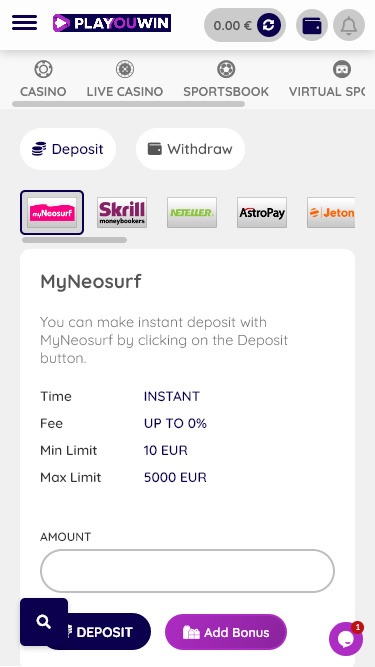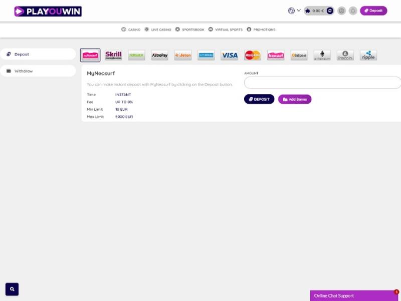 Banking銀⾏業務選項 的 Playouwin Casino