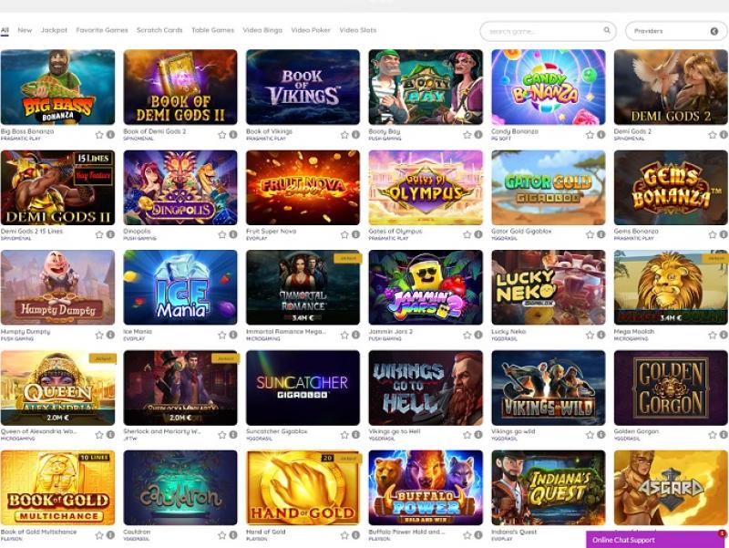 一些誘人的遊戲包括:財富洞穴、不朽的浪漫 Mega Moolah、Mega Moolah、亞歷山大女王 WowPot、夏洛克和莫里亞蒂、世界飛鏢錦標賽、拉美西斯之書RHFP、奧茲姐妹大獎、好女孩,壞女孩、熔岩山、亞歷山大女王、神奇鏈接阿波羅、動漫之書、眾神之力冥王持有大獎、皇家硬幣、持有並獲勝、銀船長之書、貪婪的妖精、非洲日落大獎、鑽石狂野、10000 個願望、幸運寶貝大獎、黃金之手、神龍持有並被盜的寶石......