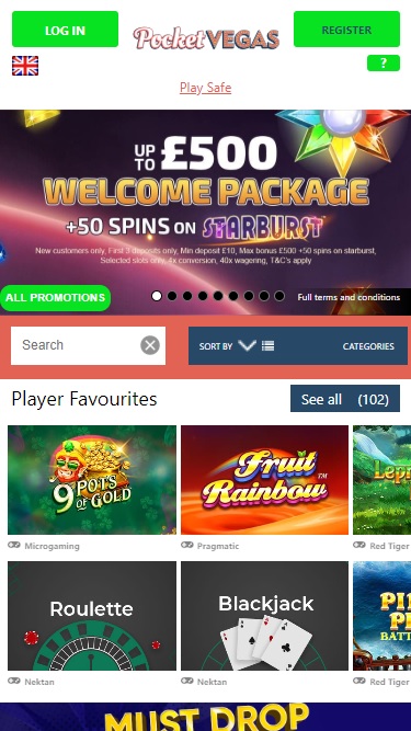 Pocket Vegas 賭場是一家線上博彩網站,成立於 2016 年,由 Nektan Limited 擁有和營運。賭場主要專注於英國博彩移動市場,提供種類繁多的遊戲,加上極具競爭力的獎金條款和合理的派彩時間,讓 Pocket Vegas 成為一家值得您投入時間和金錢的賭場。賭場資訊