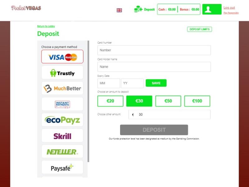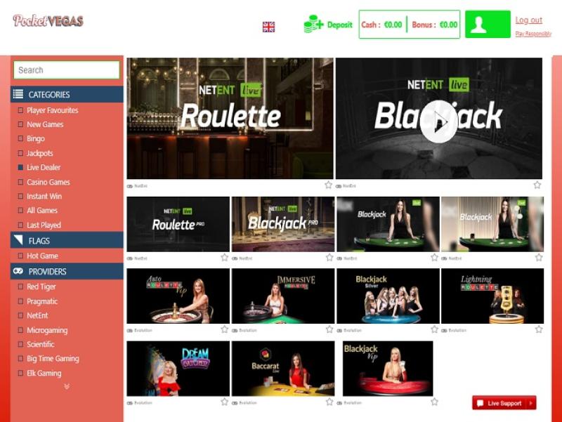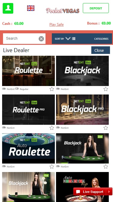 Pocket Vegas 賭場由 Microgaming, Net Entertainment, Big Time Gaming, ELK Studios, Evolution Gaming, EYECON, lightningboxgames, Yggdrasil, Realistic Games, Pragmatic Play, Red Tiger Gaming, IGT, Skillzzgaming, Golden Rock Studios, Games Global, Blueprint Gaming, Merkur Gaming, Nektan, NextGen, NYX Interactive, Inspired Gaming, Scientific Games, Iron Dog Studio, Foxium, Just For The Win, The Games Company, Rocksalt Interactive, 4ThePlayer, Crazy Tooth Studio, ReelFeel Gaming and Half Pixel Studios提供支持,其遊戲透過基於網頁的即時遊戲平台提供,您可以透過智慧型手機或平板電腦的網頁瀏覽器存取網站。行動遊戲是這裡支援的主要平台,但您也可以透過桌上型電腦存取遊戲。Baccarat