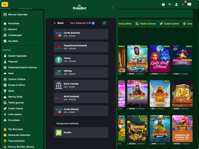 運營商只允許每人註冊一個帳戶。如果玩家註冊多個帳戶,所有帳戶將立即關閉。 賭場有權自行決定關閉任何帳戶,無需提供理由或事先通知。 任何超過 12 個月未使用的帳戶將被視為不活躍帳戶,對於此類帳戶,業者有權收取月費。 所有玩家均需驗證帳戶 ,並向操作員提供有效的身份證明文件、不超過三個月的地址證明,或其他賭場工作人員(包括財務部門)要求的文件。所有文件的複印件均可透過電子郵件發送至客服團隊。業者有權要求提供經公證的文件影本。 如果玩家未完成驗證流程,PokerBet Casino 有權拒絕處理提款要求。 提現可能需要支付手續費。 所有存款必須先用於遊戲並投註一次,才能提出提款申請。 最高提款金額取決於 VIP 等級,這意味著 VIP 等級越高的玩家每月可享受的提款限額越大。 嚴格的「同名」政策:付款方式必須與已驗證帳戶持有人的身分相符。 可透過授權檢查來驗證持卡人身分。 為了遵守規定和控制風險,大額提款可能會分多次支付。 存款退款通常會退回到原卡,而獎金則會透過認可的其他方式支付。 獎金將被鎖定,直到完成所有投注要求。 如果連續 12 個月沒有活動,可能會收取不活動費用(例如,每月 5 歐元)。 如有未完成的投注或待進行的遊戲回合,提款將被阻止。 PokerBet會員可使用多種法定貨幣和加密貨幣 ,包括澳幣、巴西雷亞爾、加幣、美元、歐元等,以及比特幣現金、比特幣、達世幣、以太幣、萊特幣、泰達幣等。