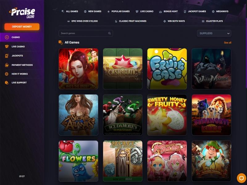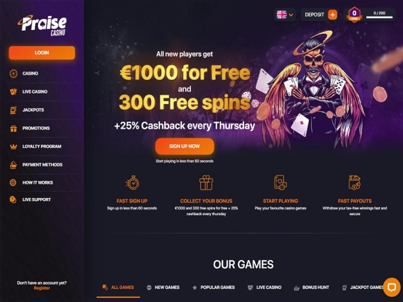 這裡有超過4000款遊戲,涵蓋所有主流博彩類別,包括真人娛樂場。 Praise Casino提供豐厚的獎金和促銷活動,以及25種支付方式(支援Trustly)和即時聊天服務,致力於提供業界最高水準的服務。