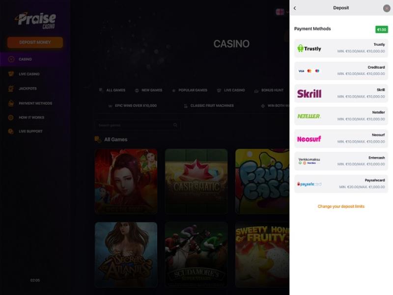 下面您可以看到更多有關 Praise Casino銀行業務選項的內容,包括存款到提款方式。