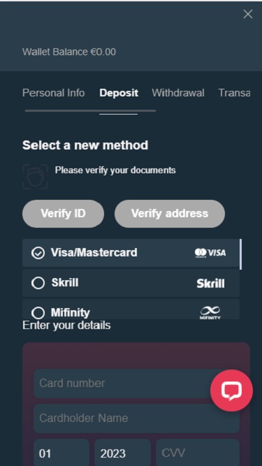 正如我們之前提到的,這是一家加密貨幣友善的賭場,支援多種流行的加密貨幣。喜歡使用傳統銀行業務的玩家也可以選擇多種支付方式,包括支付卡、電子錢包和其他線上支付系統: