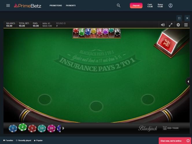 PrimeBetz Casino Blackjack (Microgaming)展開