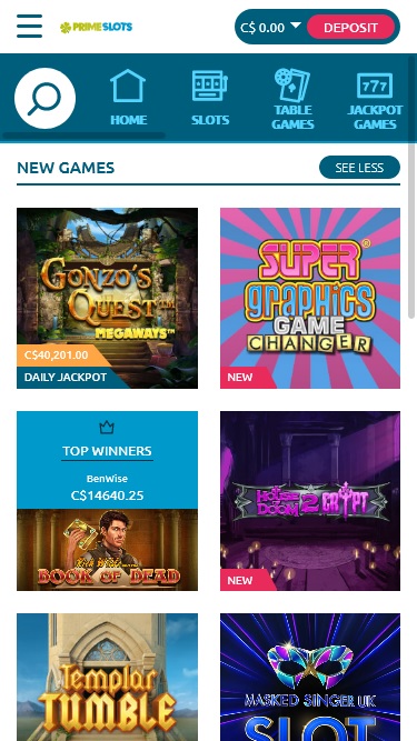 PrimeSlots 並沒有獲得Wizard of Odds概率巫師的認證。