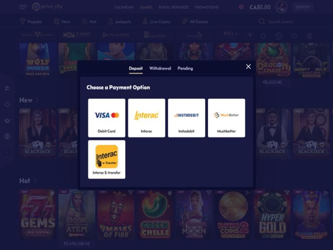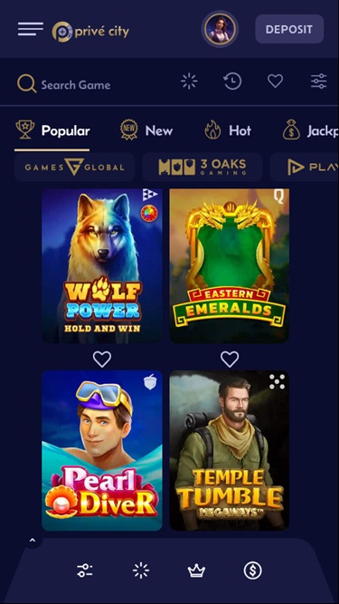 Prive City Casino 的營運商深諳此道,因此您會看到許多業內知名品牌,例如 Microgaming、 Relax Gaming 、Playson、Big Time Gaming 等等。這為玩家提供了豐富的選擇,尤其是在線上老虎機方面。