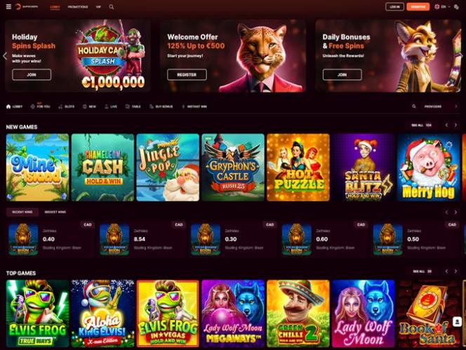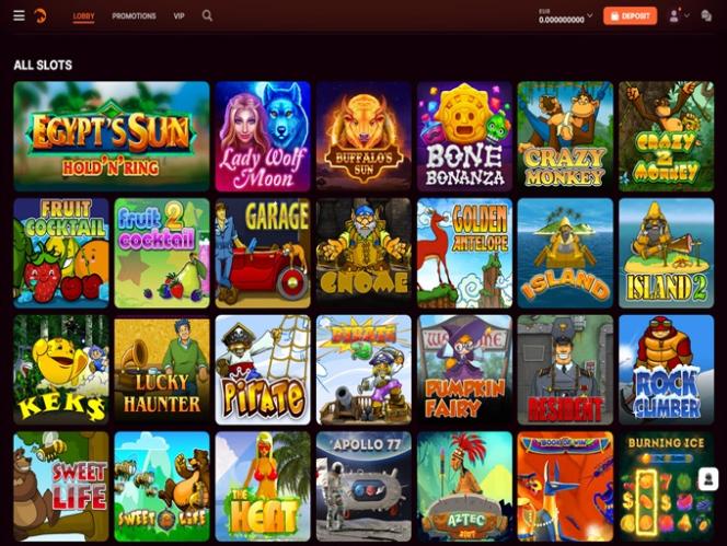 正如我們之前提到的,賭場的佈局井然有序,分為大廳、促銷和VIP三個部分。所有可用內容都歸類為:大廳、熱門推薦、老虎機、新遊戲、真人遊戲、桌上遊戲、購買獎勵、即時贏取和遊戲提供者。以下是一些特色賭場遊戲: