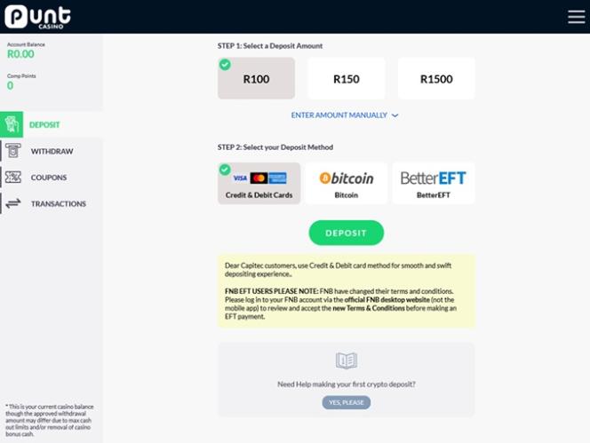Punt Casino 是一家專注於南非博彩市場的線上博彩網站。該網站於 2018 年上線,致力於滿足南非玩家對全方位線上博弈服務的需求。該賭場支援桌面和行動設備,並提供合理的賠付時間。雖然 Punt Casino 可能與一些受監管國家的知名網站相比略遜一籌,但它仍然是南非玩家能找到的優質博彩網站之一。