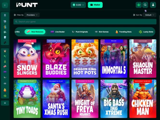 如果您正在尋找一家提供豐富線上老虎機遊戲的抽獎賭場,那麼 Punt Casino 就是您的不二之選。賭場擁有琳瑯滿目的精彩老虎機遊戲供您探索,而且遊戲類別豐富,每位玩家都能找到最適合自己喜好的遊戲。不妨試試以下熱門遊戲: